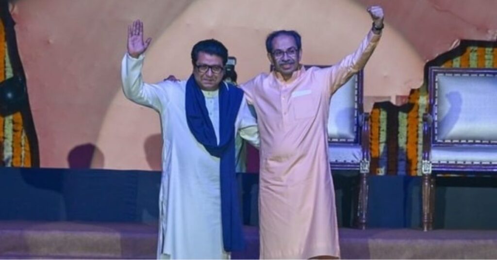 शिवसेना (UBT) के प्रमुख उद्धव ठाकरे और महाराष्ट्र नवनिर्माण सेना (MNS) के अध्यक्ष राज ठाकरे ने 20 साल बाद पहली बार सार्वजनिक रूप से एक मंच साझा किया। यह ऐतिहासिक मिलन महाराष्ट्र सरकार द्वारा प्राथमिक स्कूलों में लागू की गई तीन-भाषा नीति को वापस लेने के फैसले की खुशी में आयोजित किया गया। दोनों दलों का मानना है कि यह नीति छात्रों पर हिंदी थोपने जैसा था।
