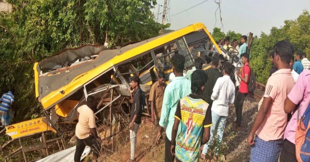 तमिलनाडु के कुड्डालोर जिले में मंगलवार सुबह एक दर्दनाक हादसे में दो स्कूली बच्चों की मौत हो गई और छह अन्य घायल हो गए जब उनकी स्कूल वैन एक पैसेंजर ट्रेन से टकरा गई। यह टक्कर सुबह करीब 7:45 AM कड्डालोर और अलप्पाक्कम के बीच स्थित एक ‘नॉन-इंटरलॉक्ड मैनड गेट’ रेलवे लेवल क्रॉसिंग पर हुई, जब विल्लुपुरम-मयिलाडुथुराई पैसेंजर ट्रेन उस रास्ते से गुजर रही थी। टक्कर इतनी भीषण थी कि स्कूल वैन पूरी तरह से क्षतिग्रस्त हो गई। अधिकारियों ने बताया कि जिस गेट से हादसा हुआ, वहां गेटमैन ने गेट बंद करना शुरू कर दिया था, लेकिन वैन चालक ने जबरन गेट पार करने की कोशिश की, जो नियमों के खिलाफ था। रेलवे के अनुसार, यह वैन को गेट पार करने देने का मामला नहीं था और गेटमैन की इस गलती के लिए उसे निलंबित कर दिया गया है। रेलवे ने बताया कि हादसे की जांच के लिए सुरक्षा, संचालन और इंजीनियरिंग शाखा के अधिकारियों की एक समिति गठित कर दी गई है जो घटना की विस्तृत जांच करेगी।